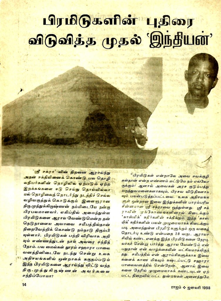 Aboorva manidhargal show in raj tv , Sri Abaswaram Ramji interviews egyptologist,anthrobiometricist ,author RKS.Muthukrishnan 1996