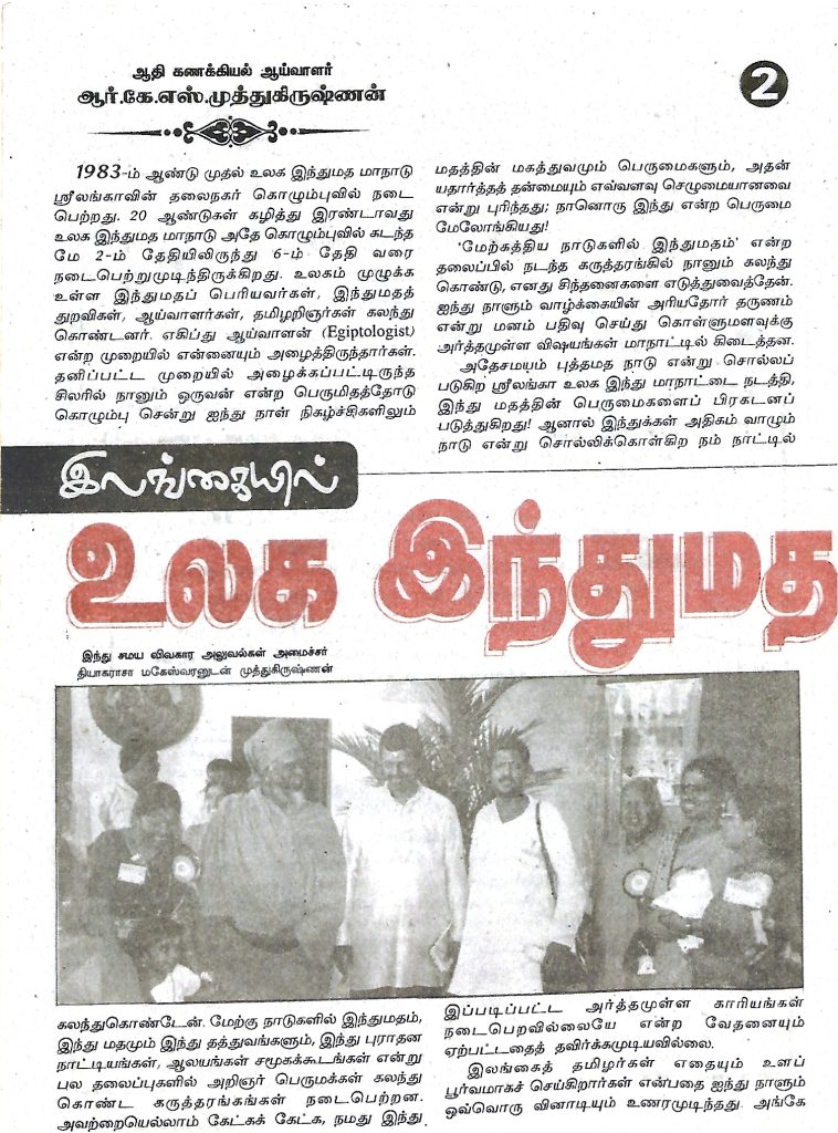 RKS.Muthukrishnan interview on Sun TV in Vanakam Thamilagam show (2000)