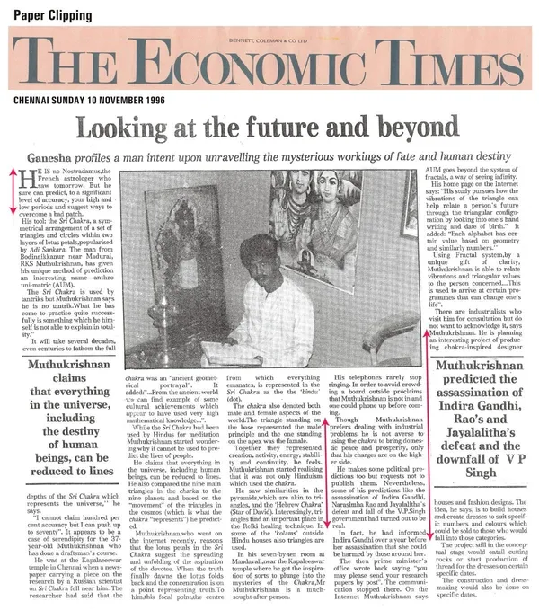 The Economic Times – Chennai,10 November 1996, Sunday,