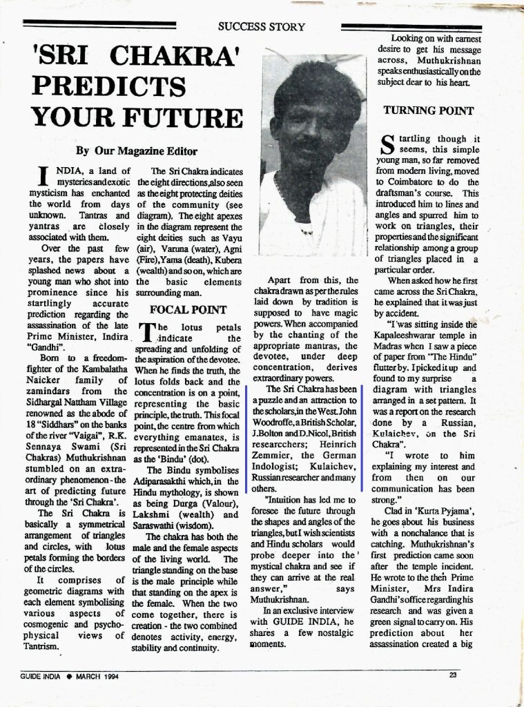 This is about an extraordinary man who claims to use the Sri Chakra yantra to make his stunningly accurate predictions